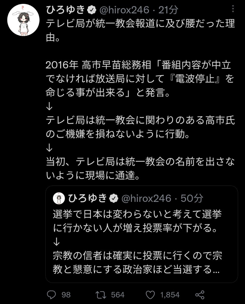 | … | 41326/02/06(金)08:59:19No.1399230039+>>こういうのがネットや議員や記者やら官僚やら秘書とかに大量にガチ信者として紛れ込んでるんだから |