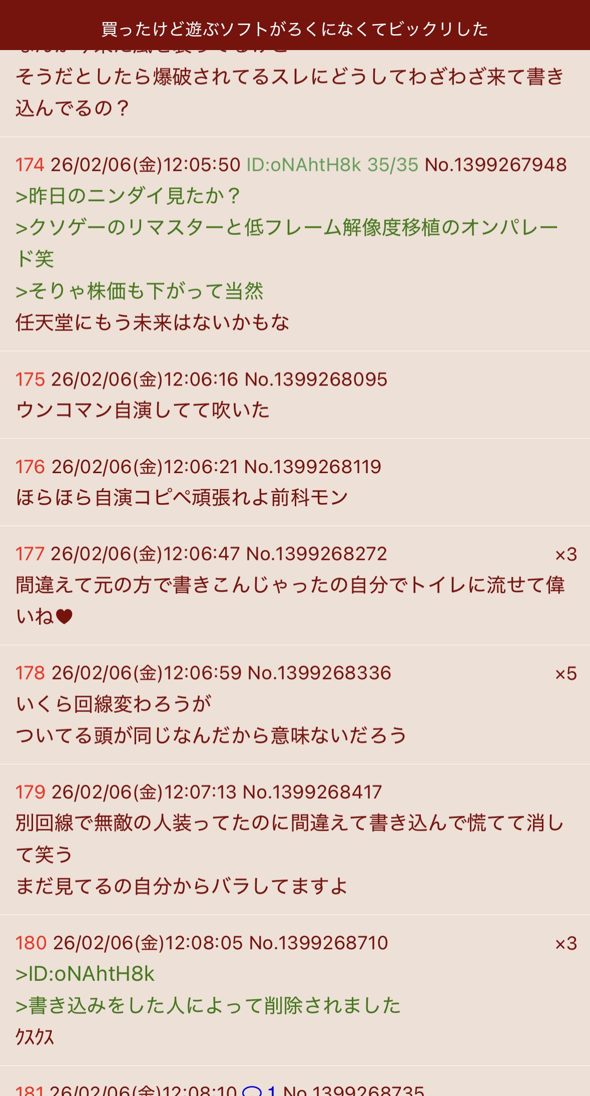 | … | 326/02/06(金)12:32:26No.1399277554そうだねx11今日はあと何回恥を晒すの? |