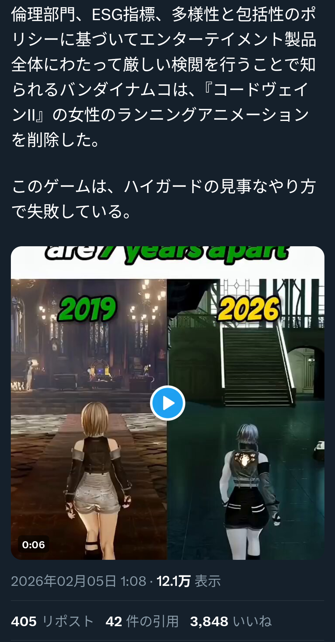 コードヴェイン2女性の歩きモーションまで男と同じにして規制したのか…
