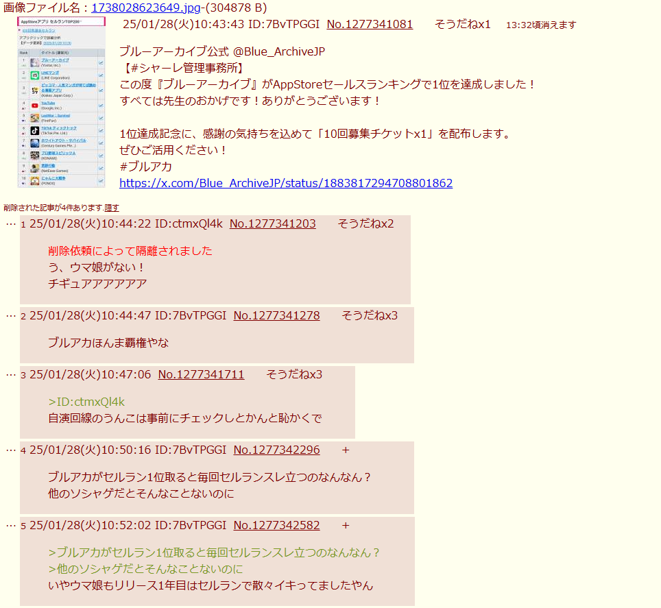| … | 6426/02/06(金)17:37:39No.1399346788+そりゃあアプリ入れてすらいない人にとっては何があっても無風でしょうね |