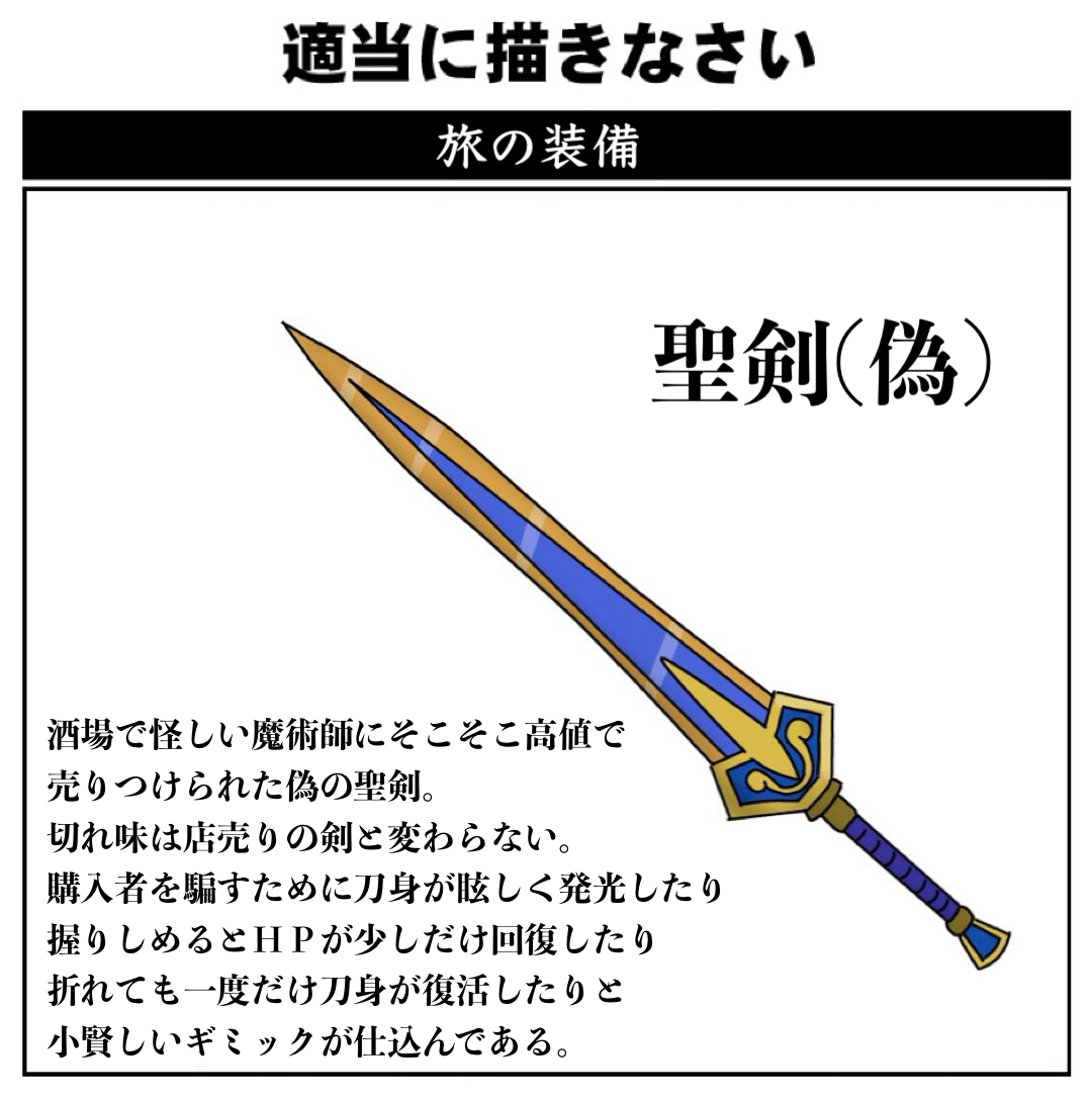 | … | 22726/02/06(金)18:12:26No.1399355055+>と問い詰めると「ひっひっひっ…すまねえ間違えたこっちが本物だった」また別の機能を持った聖剣(偽)を売ってくれる |