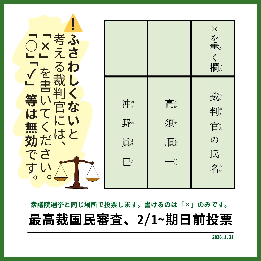 | … | 526/02/06(金)17:15:58No.1399341830そうだねx1国民審査への関心を高めるためにバツをつけようと思ってる |