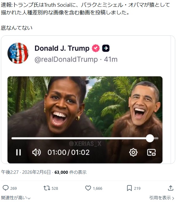 | … | 4326/02/06(金)19:55:09No.1399387888そうだねx2>凄い大統領ではあると思うよ |