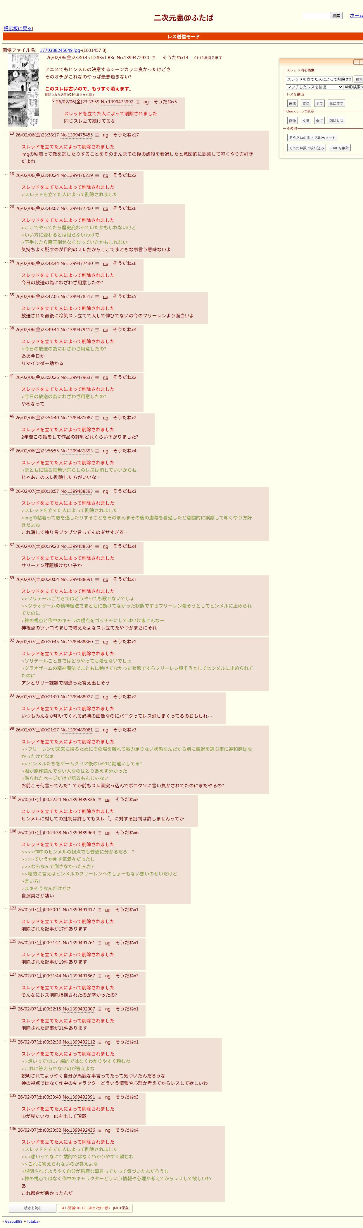 | … | 9026/02/07(土)00:20:08No.1399488719+フリーレン様 |