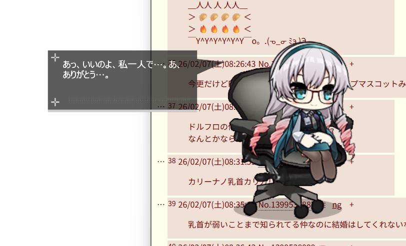 | … | 5226/02/07(土)08:56:41No.1399541302+デスクトップマスコット…? |