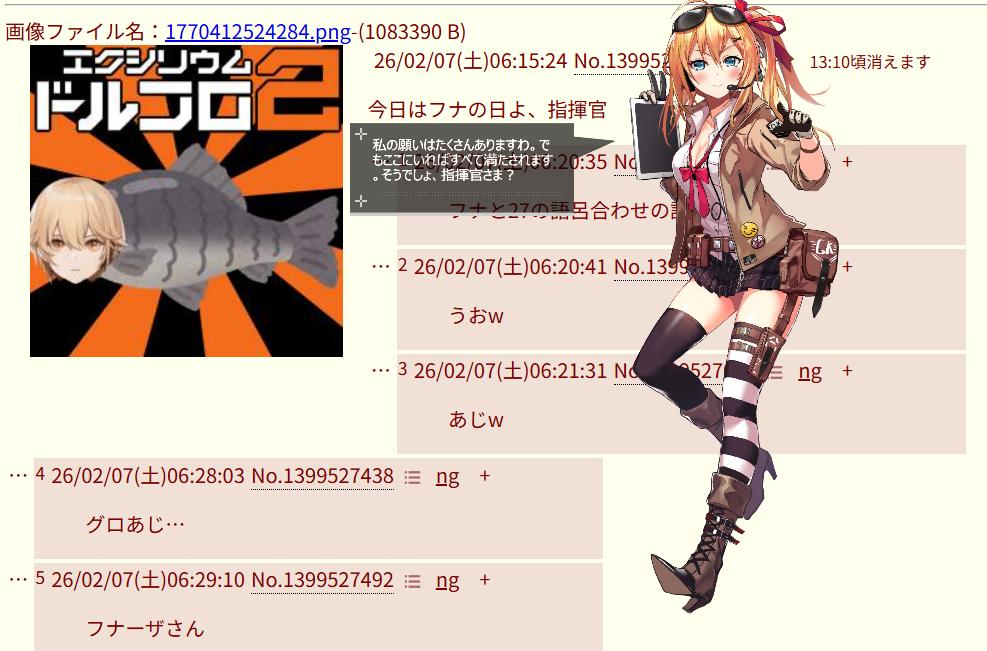 | … | 2026/02/07(土)07:34:57No.1399531883+💪🐟💪<フナッシー! |