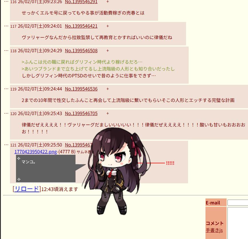 | … | 16026/02/07(土)09:40:46No.1399549524+>>ハァ!? |
