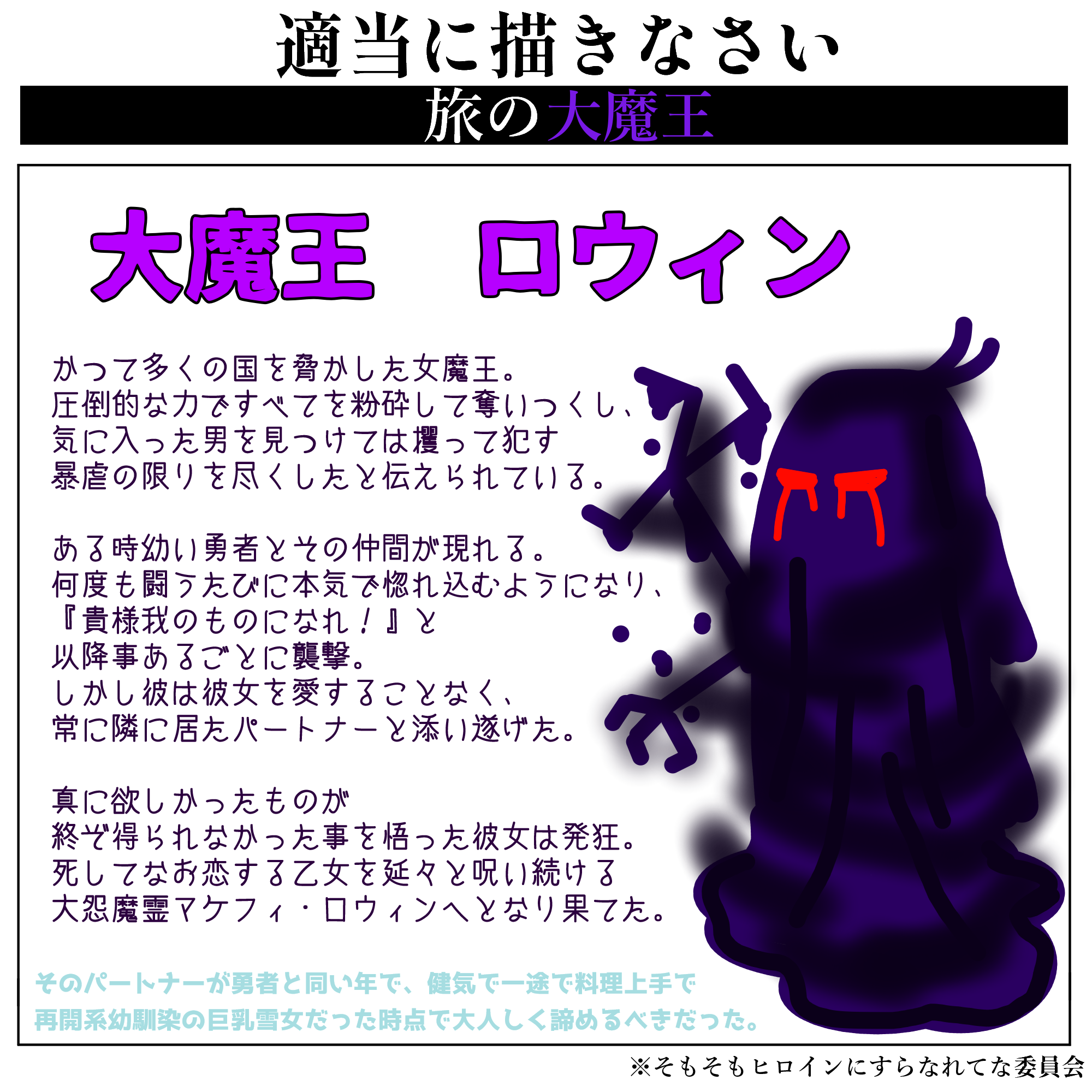 | … | 3126/02/07(土)21:57:10No.1399768935そうだねx6魔王は一度として勇者から優しい言葉をかけてもらえませんでした |