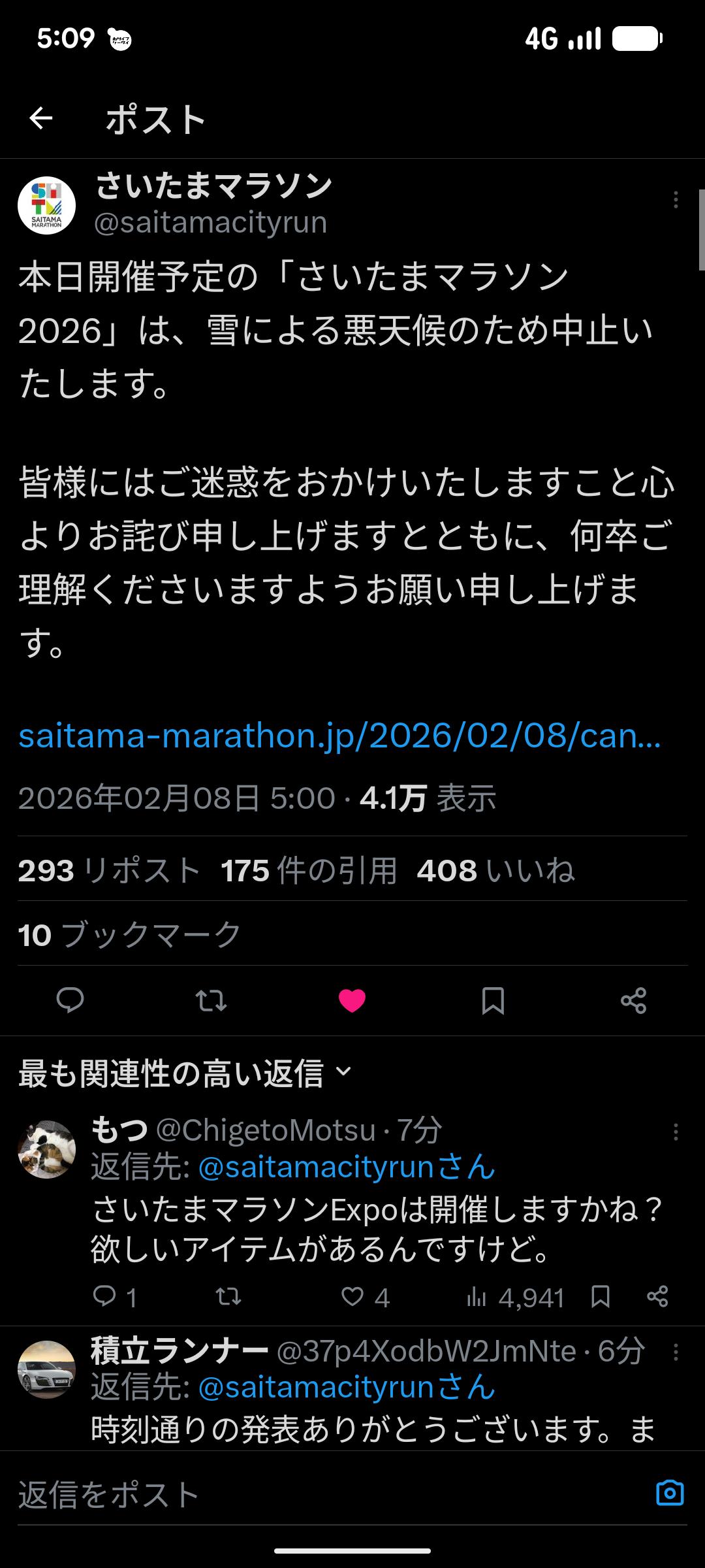 | … | 6426/02/08(日)04:10:19No.1399875250+>今日さいたまマラソン走るから開催可否の最終判断の午前5時が待ち遠しい |