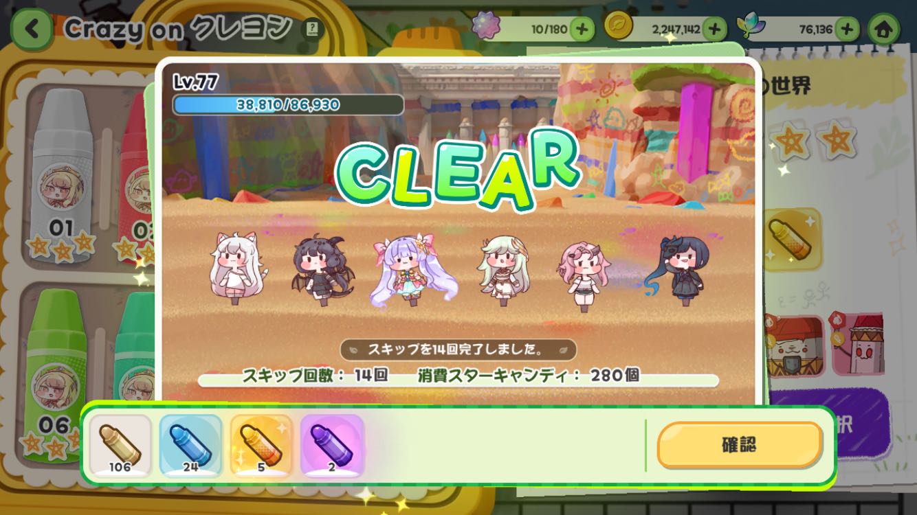| … | 1526/02/08(日)10:15:30 ID:TTL7au5gNo.1399928367そうだねx1「」ミーもハイスコア出した構成覚えてなくてずっと初日のスコアだったけどやっとさっき更新できたにゃん |