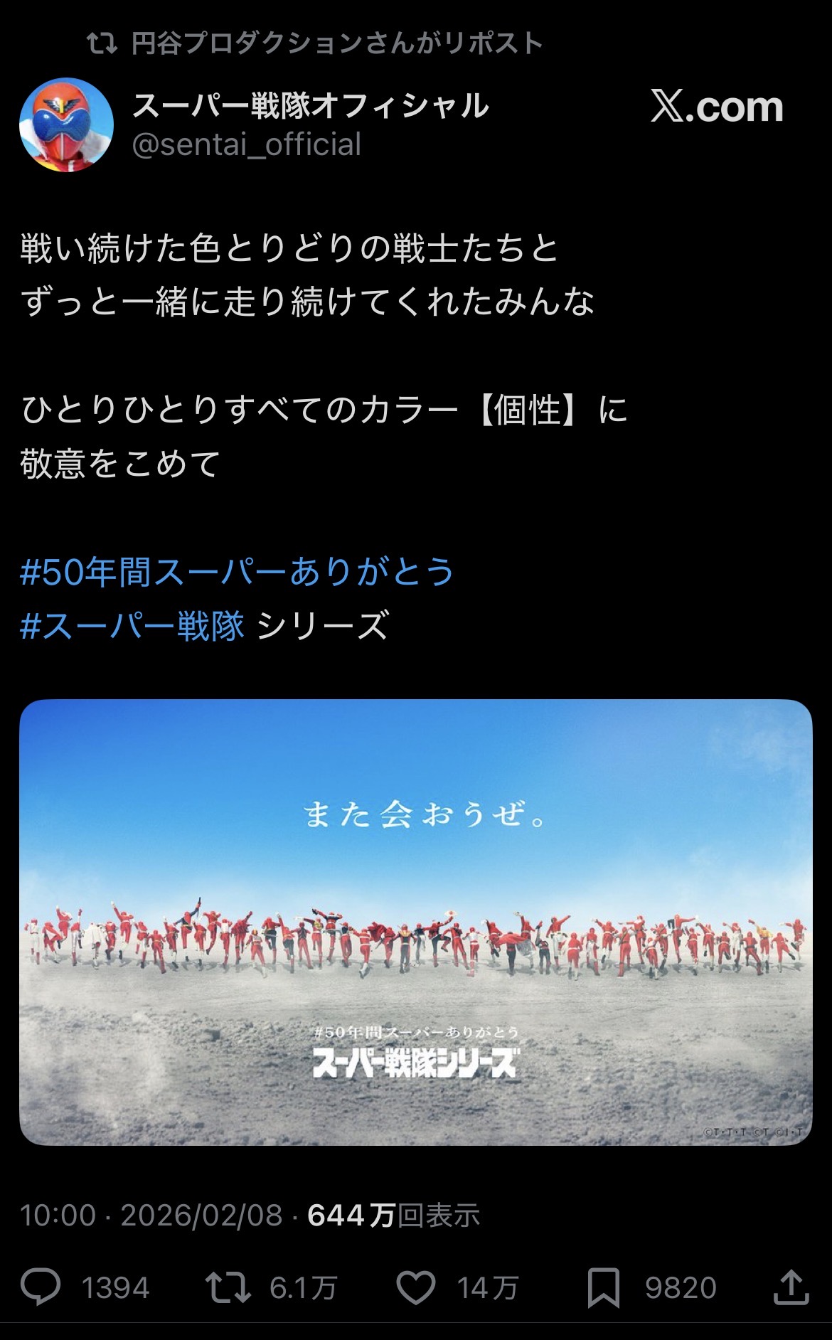 円谷プロがリポストしてんのはなんかジーンと来るこのスレは古いので、もうすぐ消えます。