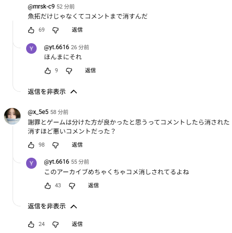 | … | 5326/02/08(日)20:41:17No.1400120680+>>さくらみこのアンチだったアカウントが一斉に加賀美擁護してんの晒されまくってて面白い |