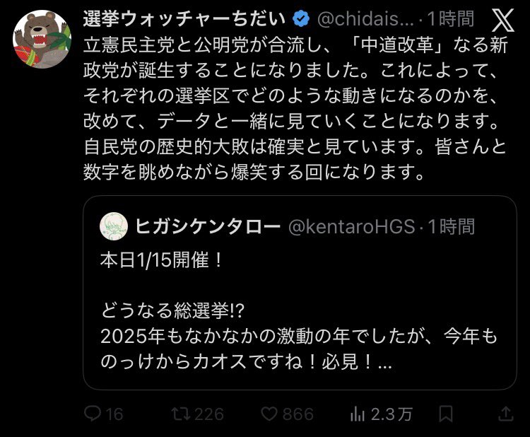 | … | 3926/02/08(日)20:41:02No.1400120570+中革連の票がなんかまるっと自民に流れて |