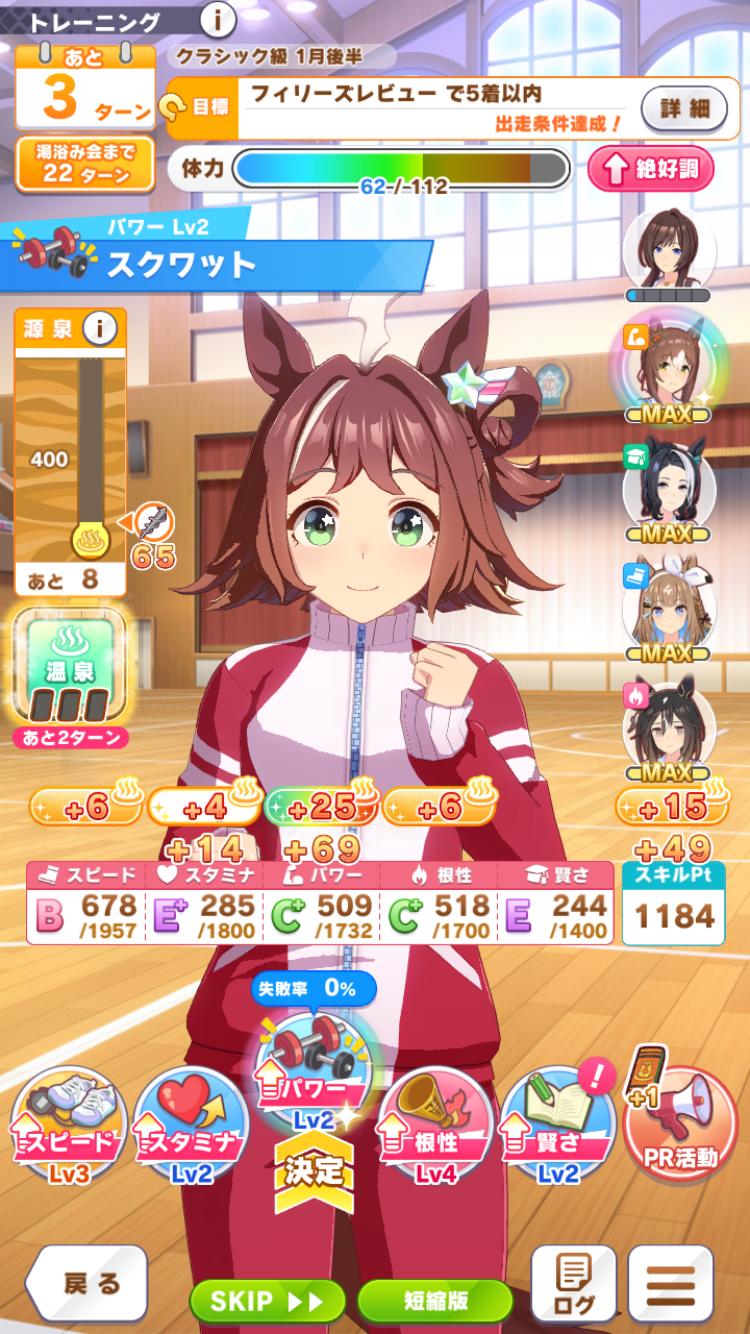 | … | 21826/02/08(日)21:59:00 ID:tjOzktg6No.1400154521+私的には根性2枚やるなら2枚目チャンにして賢さの方を変えたくなります |
