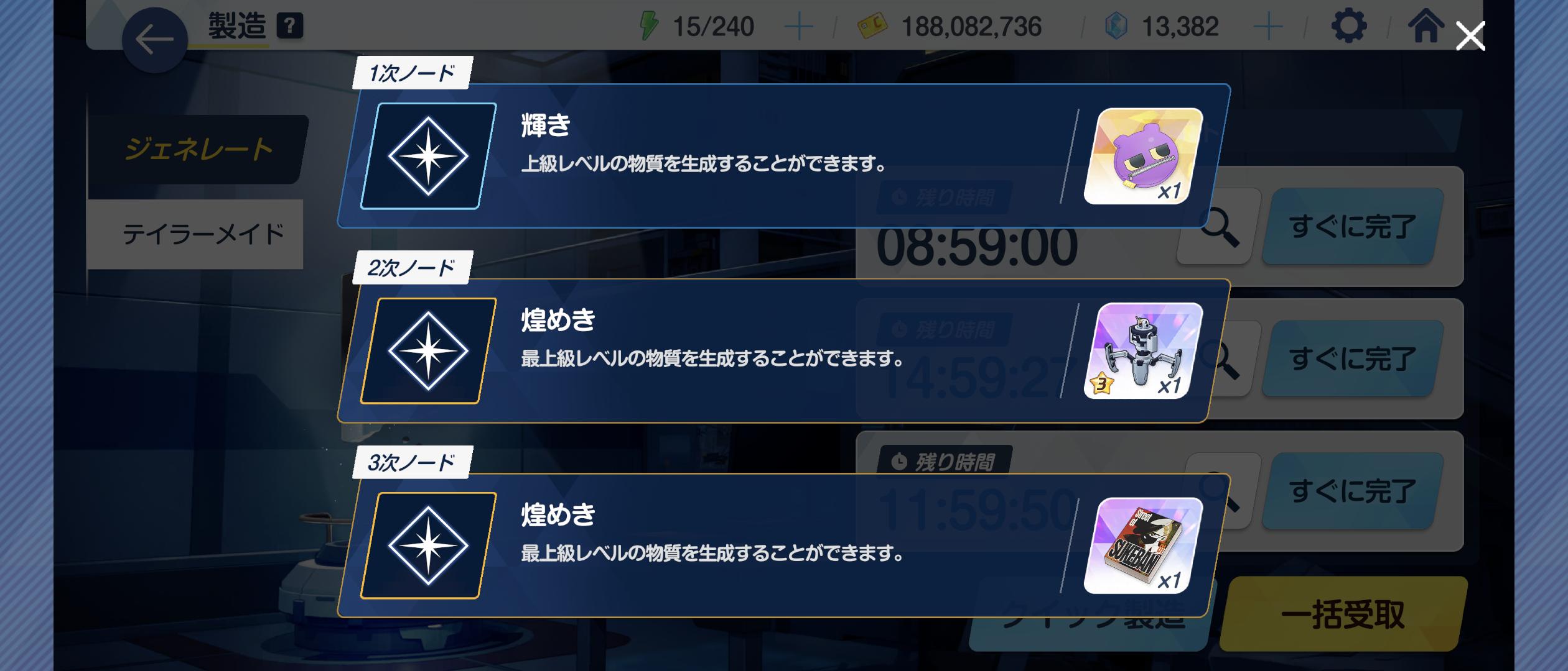 | … | 8726/02/09(月)05:44:18No.1400240916+>製造で星3家具出る確率って0.3%とかだったような… |