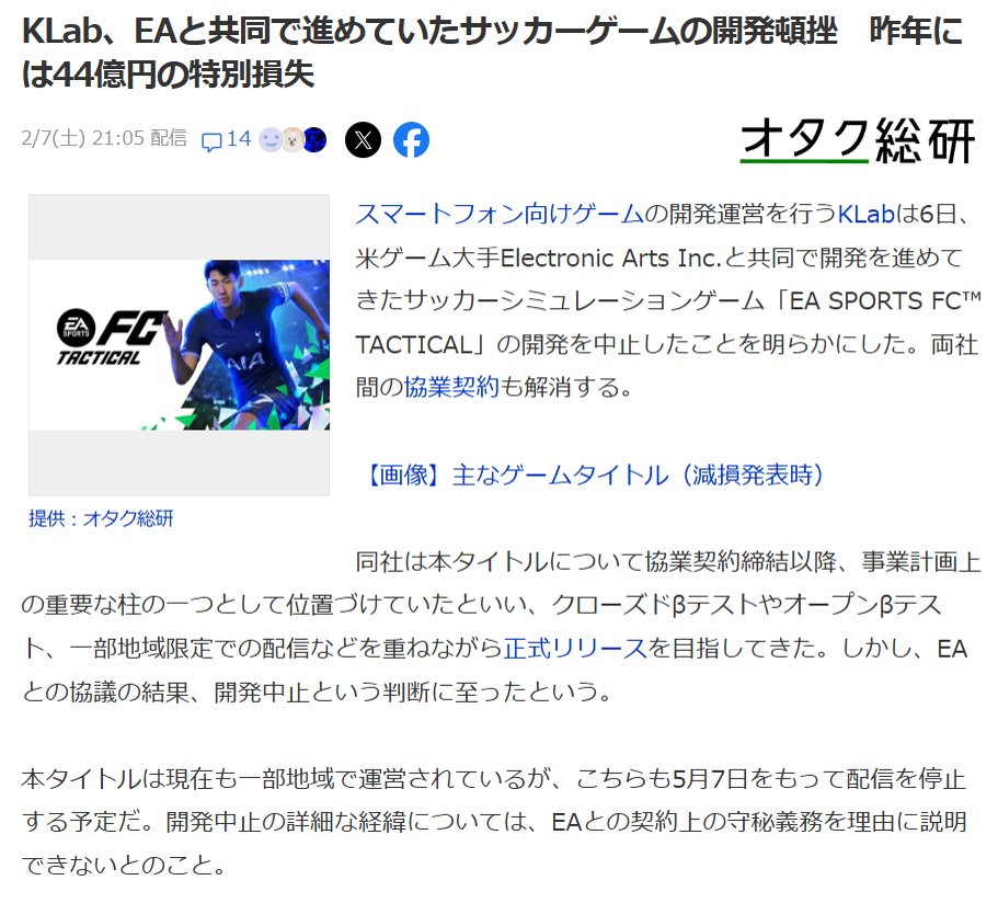 まずKlabとEAって最悪の組み合わせじゃねぇか