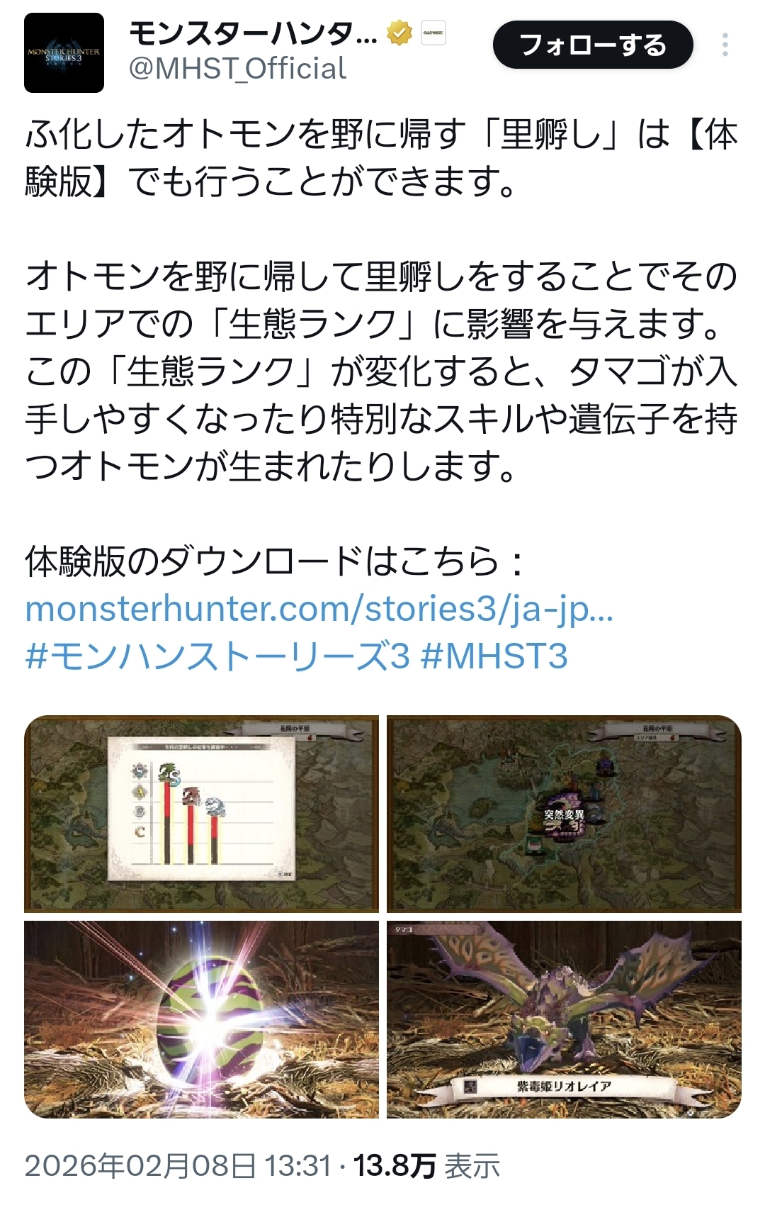 モンハン本家があんなに生態系や自然に気を遣ってるのに外伝が気軽に生態系を乱してるのスゲー悪いことやってない?このスレは古いので、もうすぐ消えます。