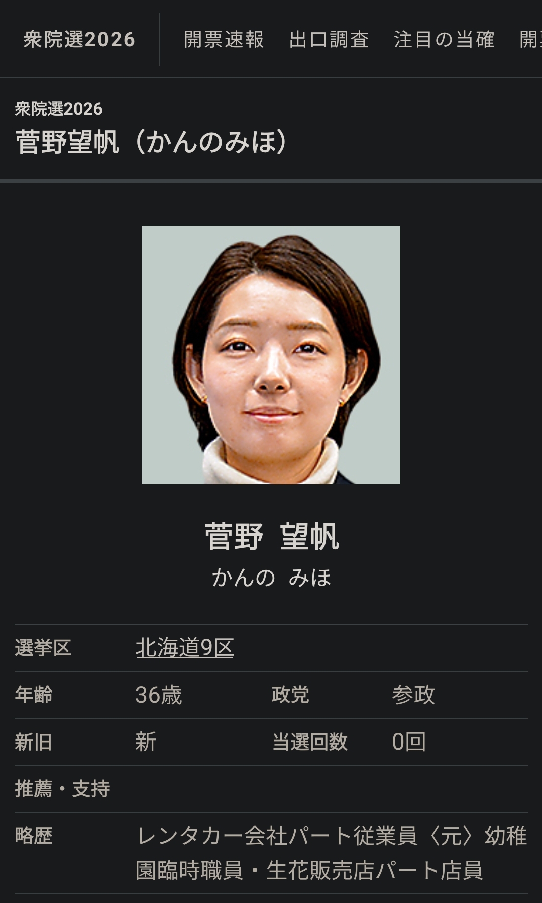 | … | 18326/02/09(月)13:44:57No.1400311913そうだねx1>菅野美穂……(北海道9区) |