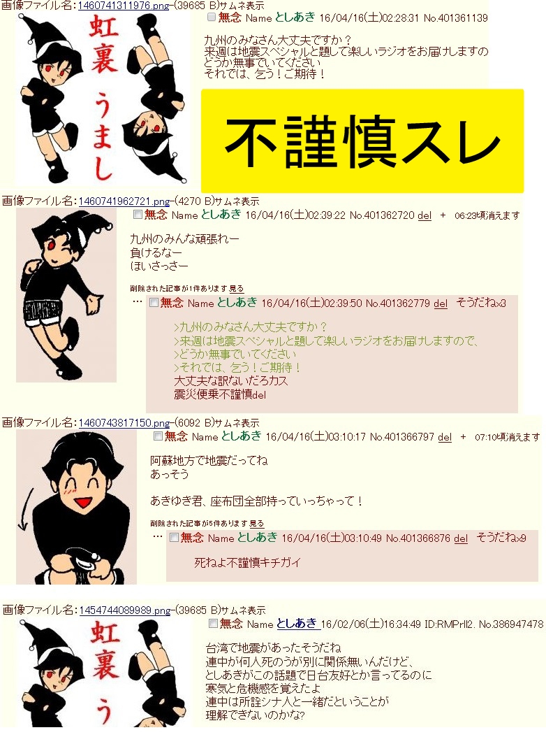 | … | 4826/02/09(月)22:54:44No.1400472040+>いや糞虫小僧ってお前… >10年も前の書き込みに未だに執着してるのかよ… 10年前から虹裏荒らしてる厨二病ラジオを庇う謎の第三者のレス 同一人物だと思ってるの?ってけおる前に裏付けを先に張る fu6276000.jpg fu6276002.jpg |
