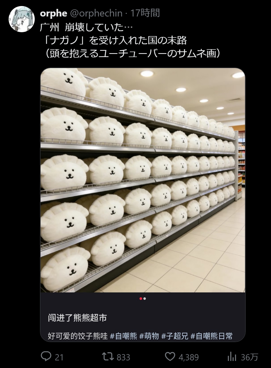 | … | 5226/02/10(火)10:18:18No.1400561198+餃子にされて中国で売り物にされるのだった… |