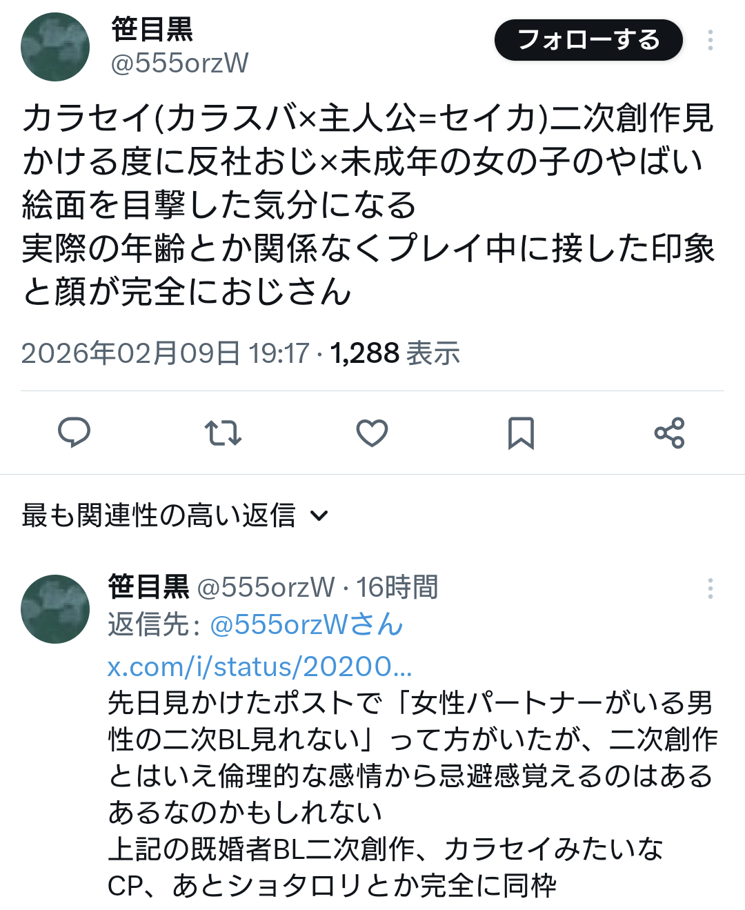 | … | 4426/02/10(火)13:36:48No.1400605962+俺のXはカラセイよりもグリセイの方が多く流れてくる… |