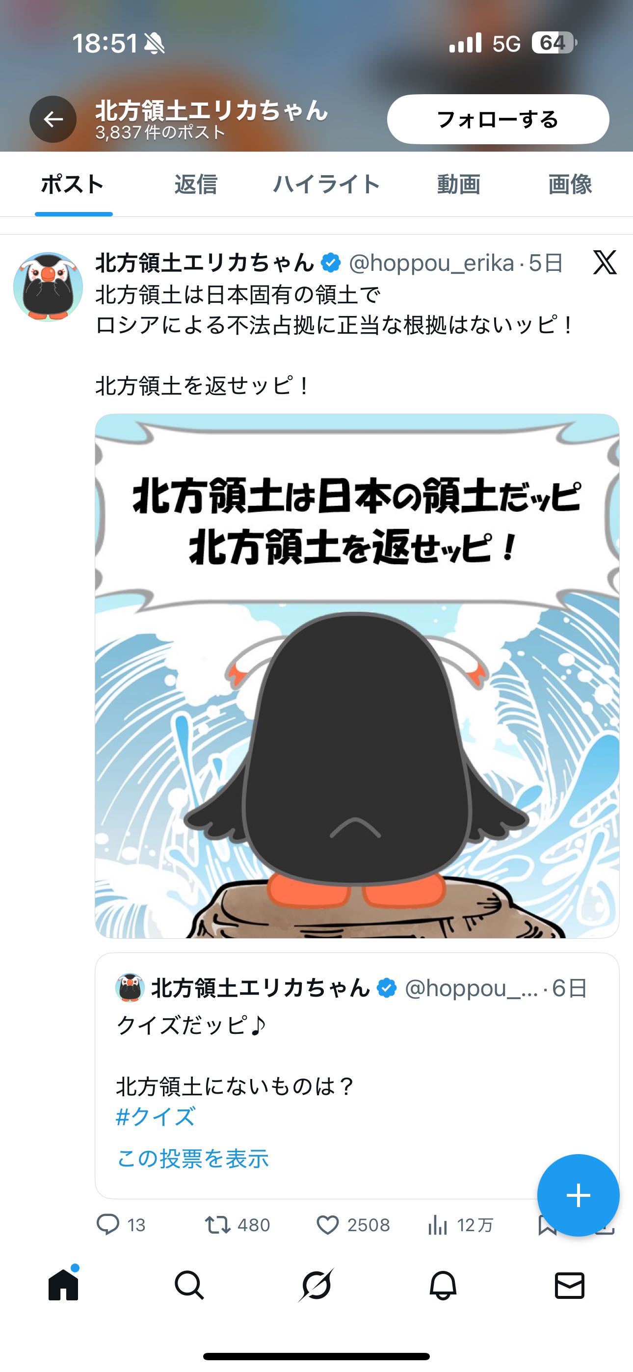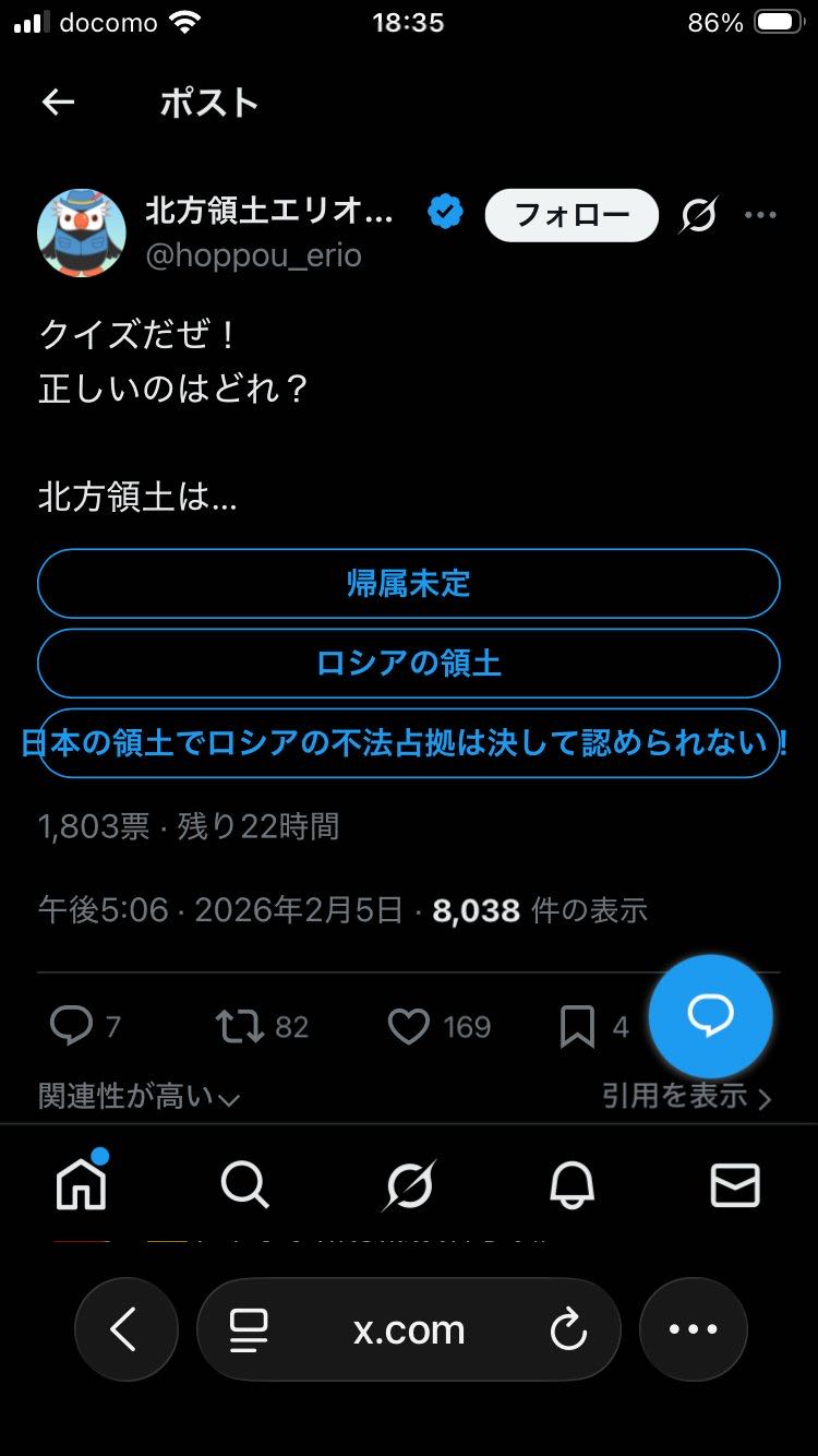 | … | 1226/02/10(火)18:29:03No.1400670643そうだねx2北方領土自体が尖閣や竹島と比べると関心薄いしな |