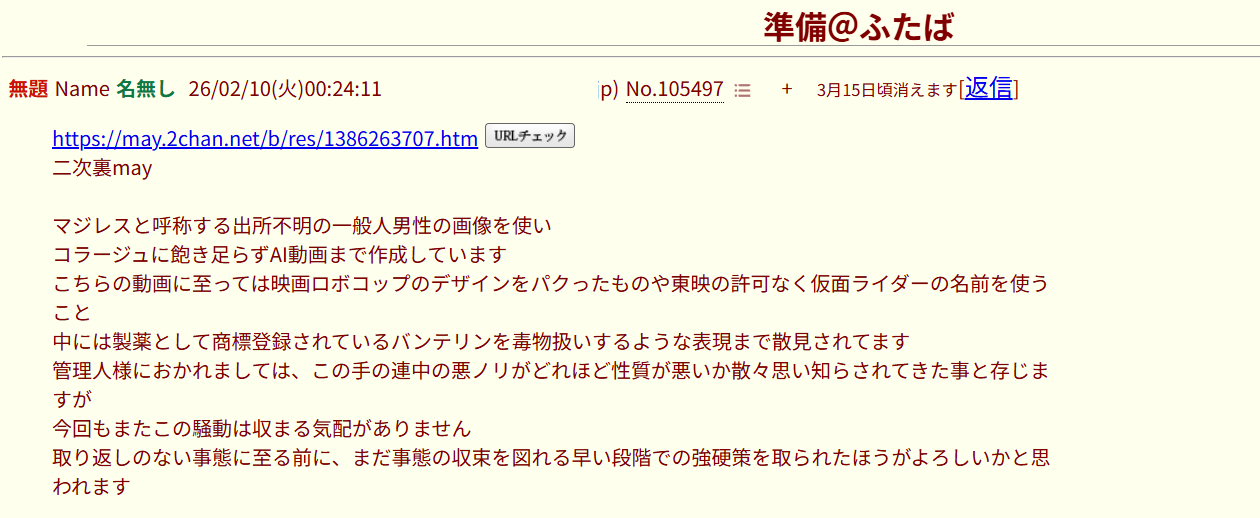 | … | 2526/02/10(火)17:31:51No.1400654599そうだねx7よくないと思いますね |