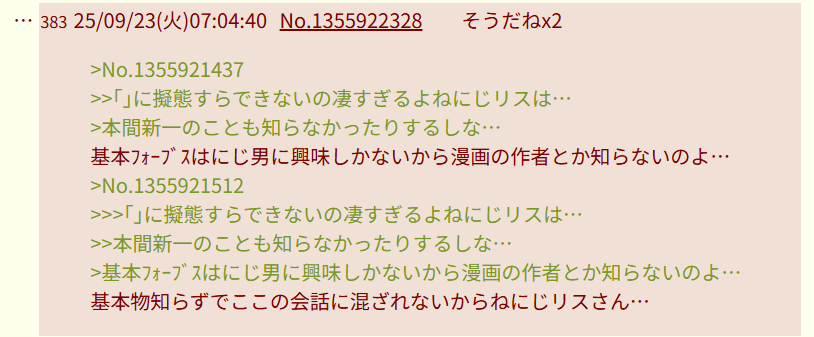 | … | 2826/02/10(火)17:32:15No.1400654713+他人がネタにされることに憤るような正義感のあるやつが虹裏にいるわけないだろ |