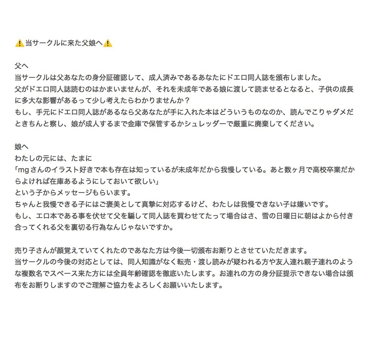 | … | 1826/02/11(水)00:17:50No.1400798066そうだねx17そもそもアマチュアが出してるブラック寄りのグレーなもんなんだから未成年が見てるなんて厄介ごとに巻き込まれて難癖つけられたくないことぐらいわかるだろ |