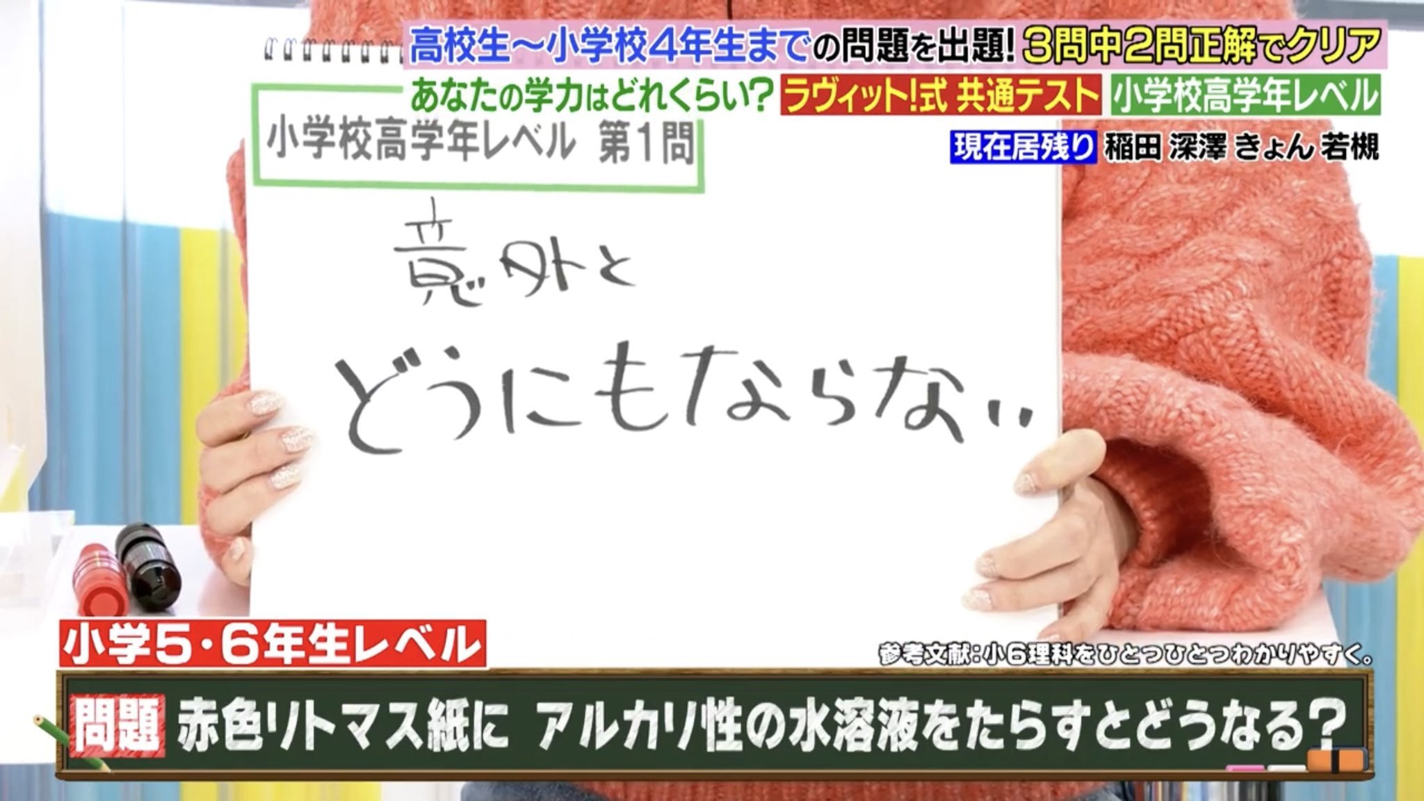 | … | 94726/02/11(水)09:05:37No.1400851507+1行目とか1節目で複数答えが存在していて後半になれば答えが絞ろれる構成なら若槻以外は正解できる |