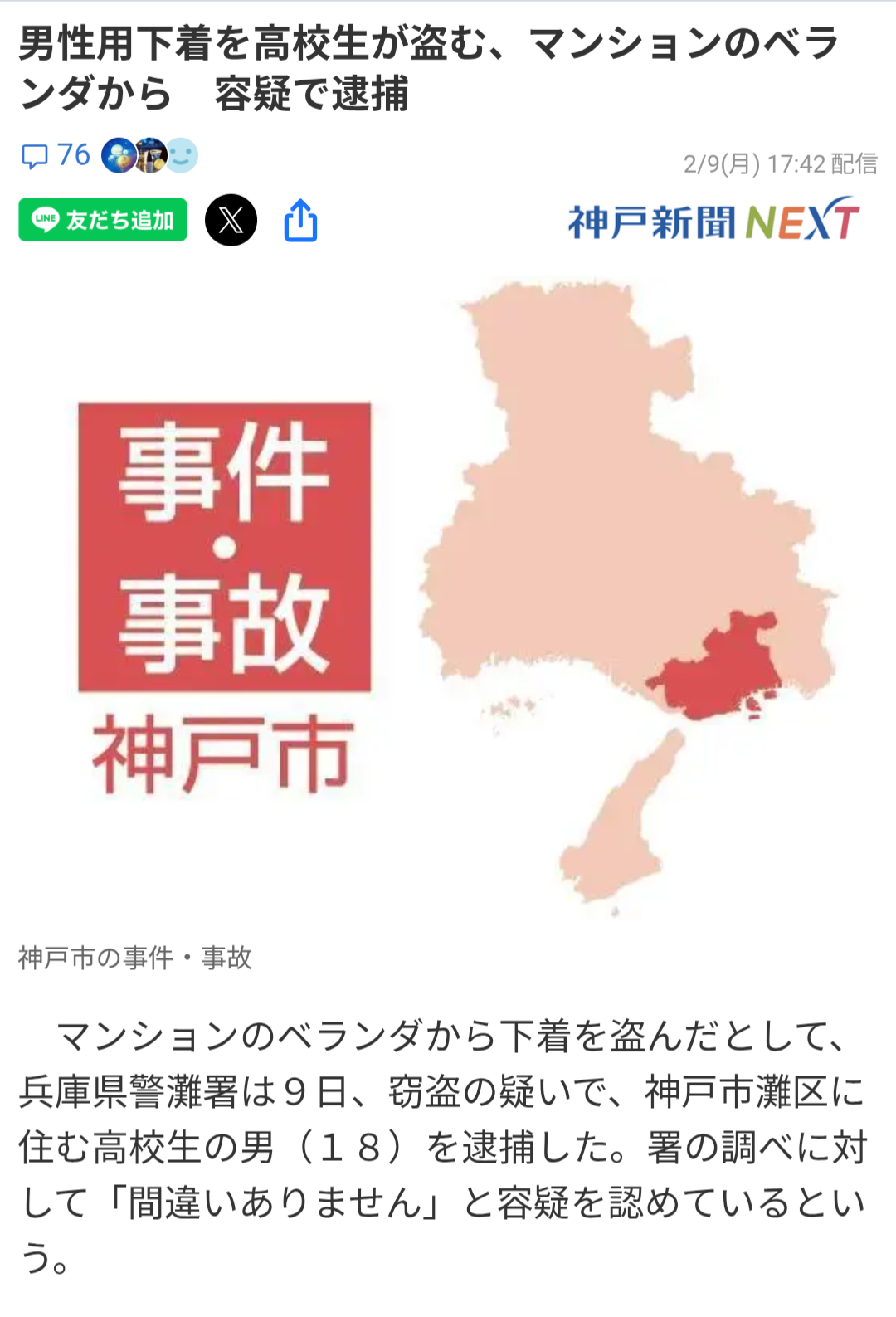 | … | 926/02/11(水)11:36:36No.1400882648そうだねx5>署によると、住人の男性(28)が「下着がなくなることが何度かあった」と署に相談。 |