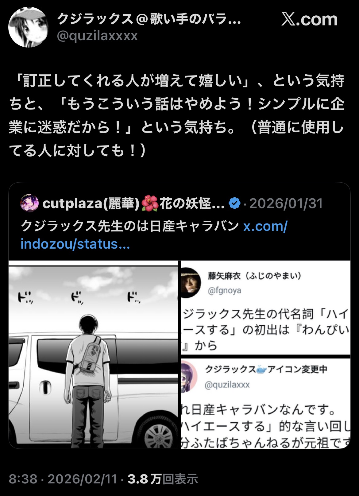 | … | 3126/02/11(水)17:01:29No.1400962042+ハイエースはパーナさん事件あたりが発端かと思ってた |
