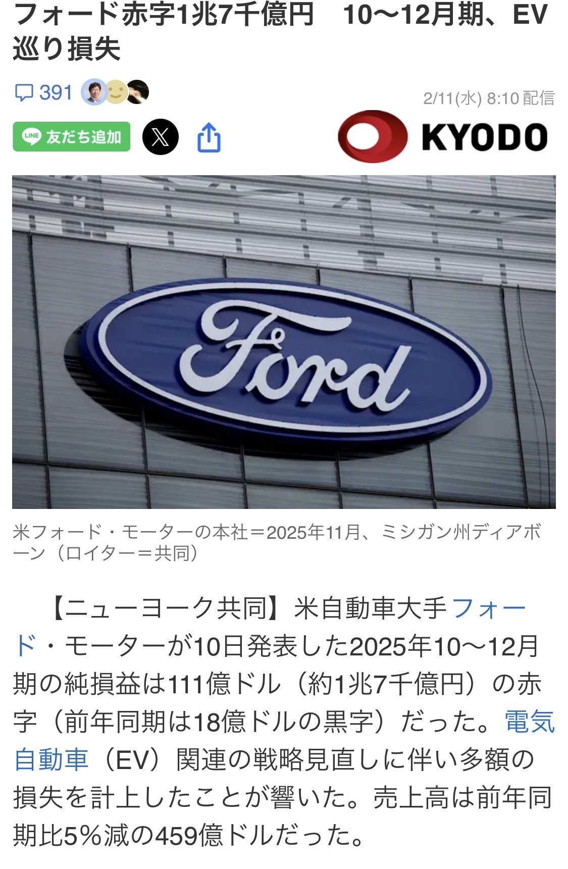 | … | 1726/02/11(水)20:17:54No.1401021297+売上自体は25億ドルしか減ってないから赤字は赤字だけど工場や開発をEV減らして燃料自動車に戻した分の設備投資額が… |