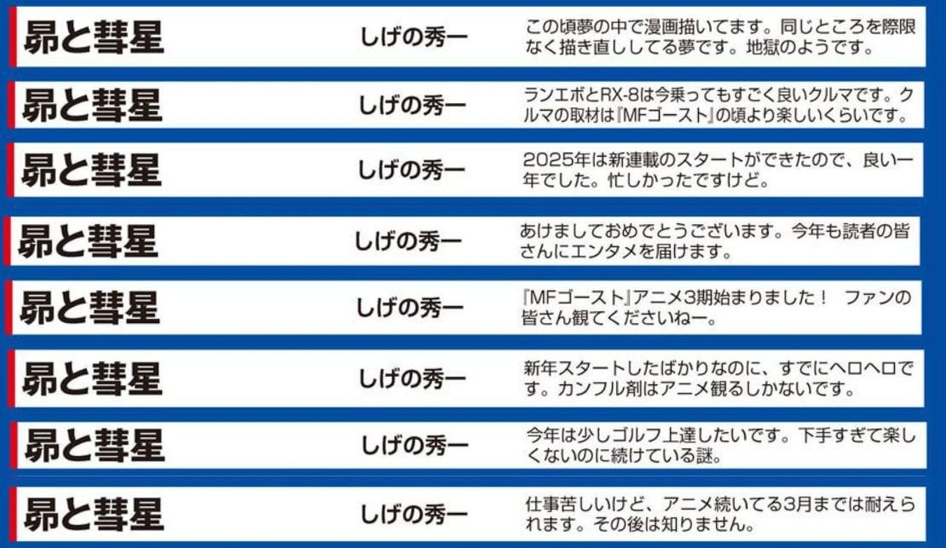 しげの先生っていつも鬱々としたコメントしてるわけじゃないんだな…