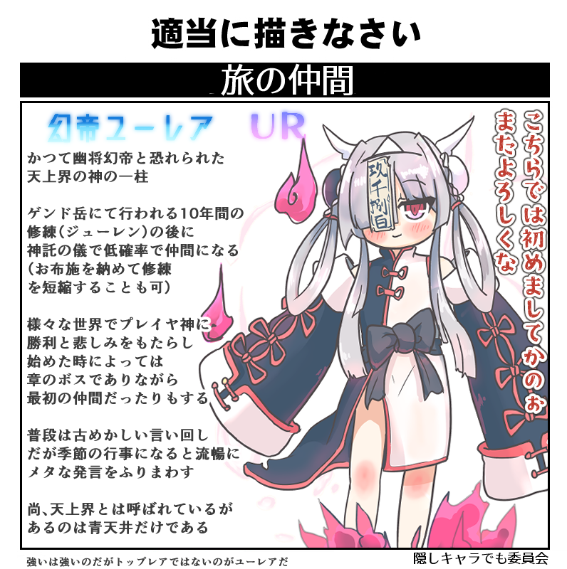 | … | 6626/02/11(水)22:44:47No.1401080300+ユーレアちゃんのキョンシーデザインの可愛さに可能性を見いだしてます…! |