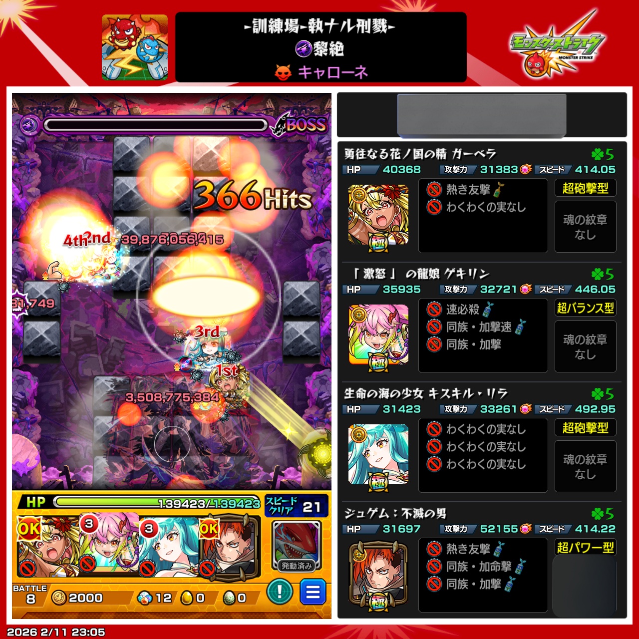 | … | 1226/02/11(水)22:39:05No.1401078187+>手番でHP0でハマると死ぬんだっけ? |