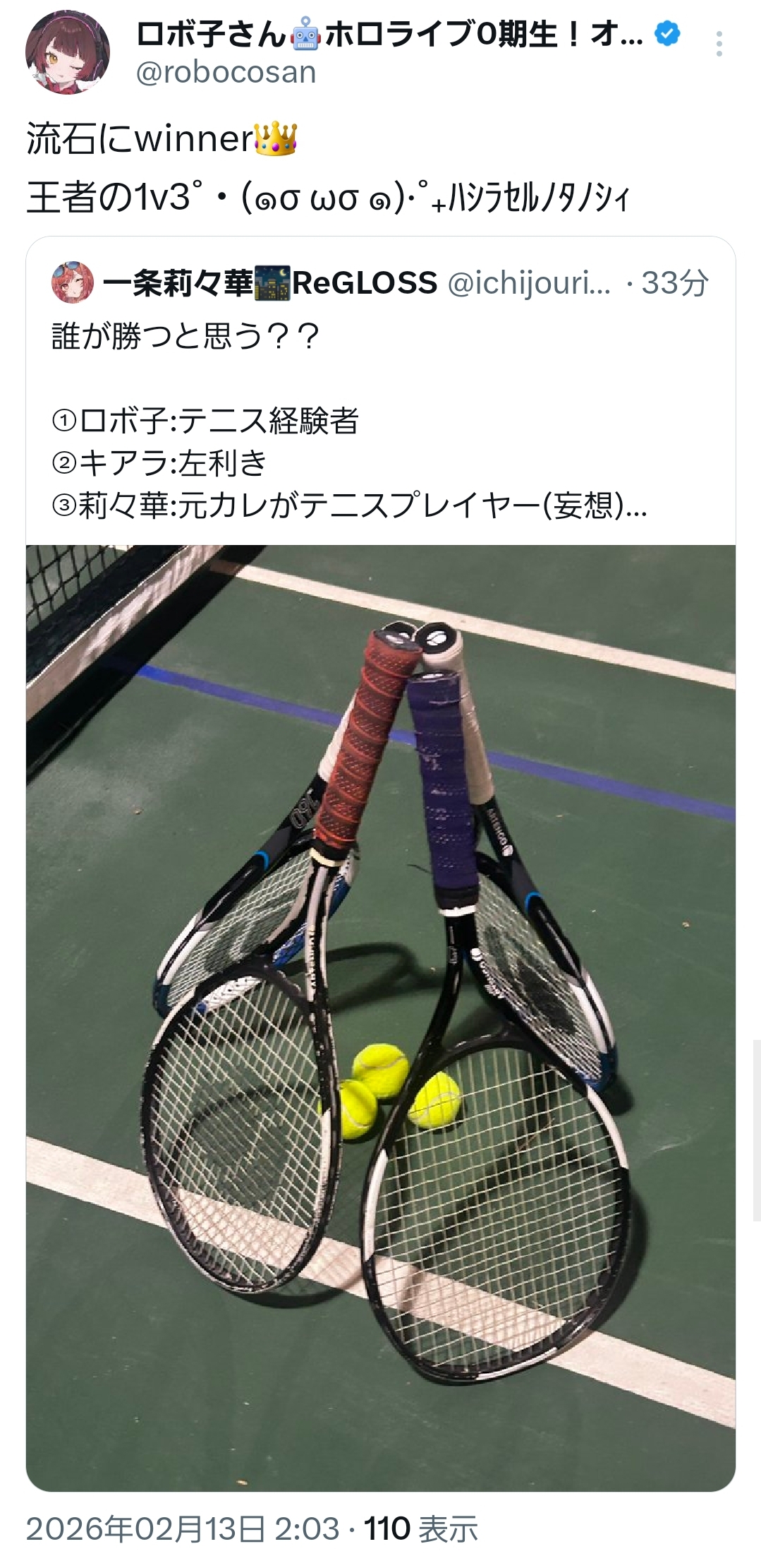 | … | 826/02/13(金)09:43:16No.1401486124そうだねx8>昨日景吾がね |