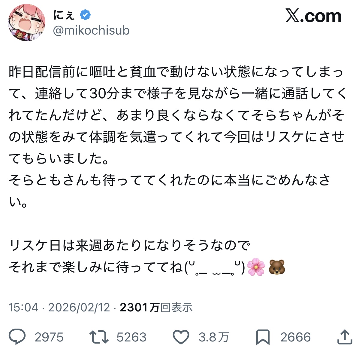 体調不良なだけで叩くアンチ頭おかしいよ