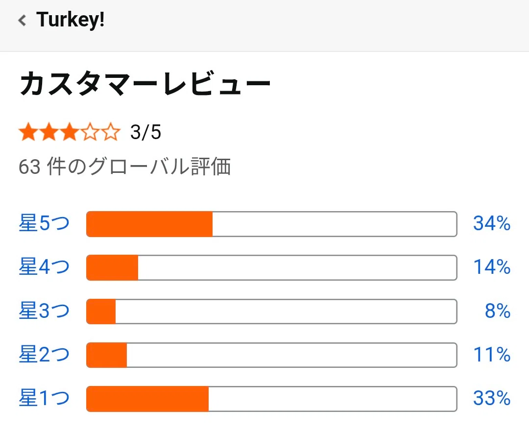 | … | 2426/02/13(金)17:57:15No.1401606256そうだねx4>Turkeyがは☆1と☆5が拮抗して☆3なので… |