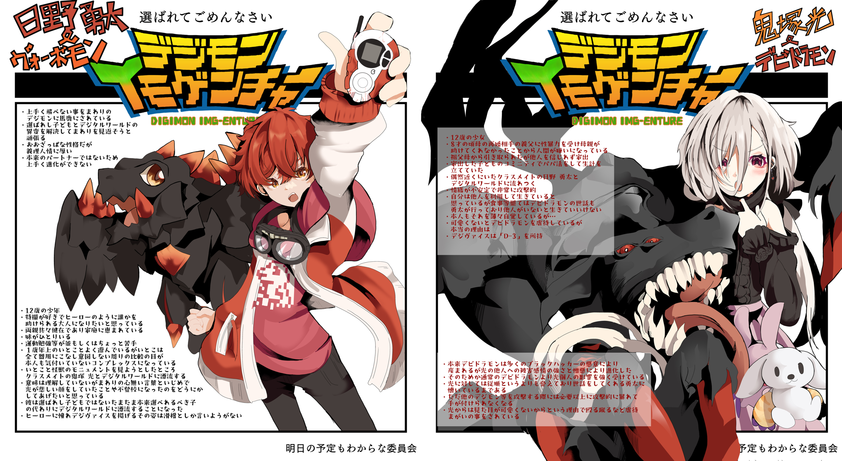 | … | 226/02/13(金)20:59:23No.1401670545+何故?とファヨンは思ったが、湧いてきた嬉しさから何も言わず、ログハウスに2人とそのパートナーを招き入れると、自分も買い溜めた冷凍のフライドチキンを用意し、即席のログハウスのテーブルに盛られた食事や飲み物はおよそ、デジモンに人間を売って金を稼ぎ、デジタルワールドの侵略を行なっている組織幹部の集まりとは思えないものとなった。 |