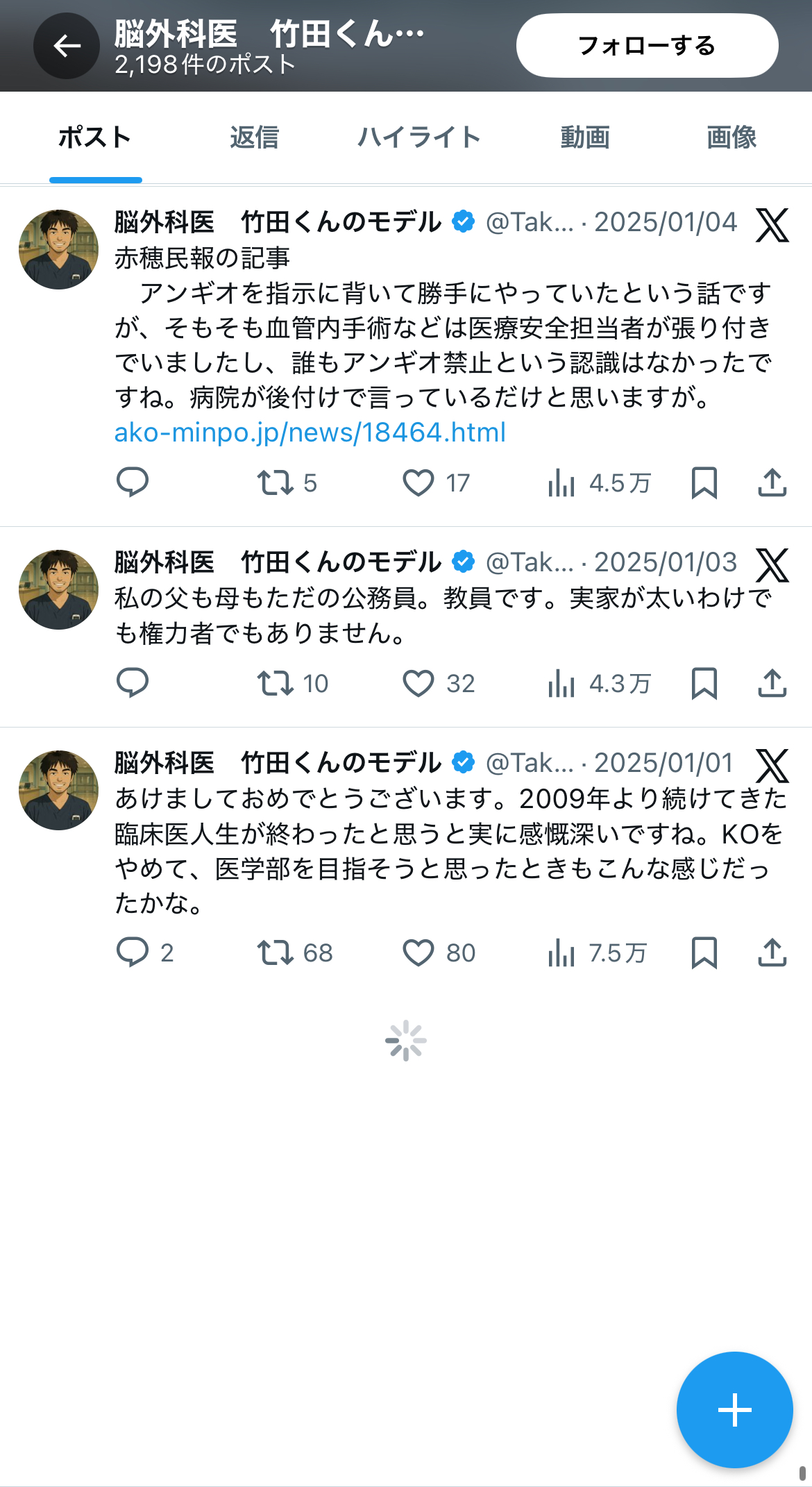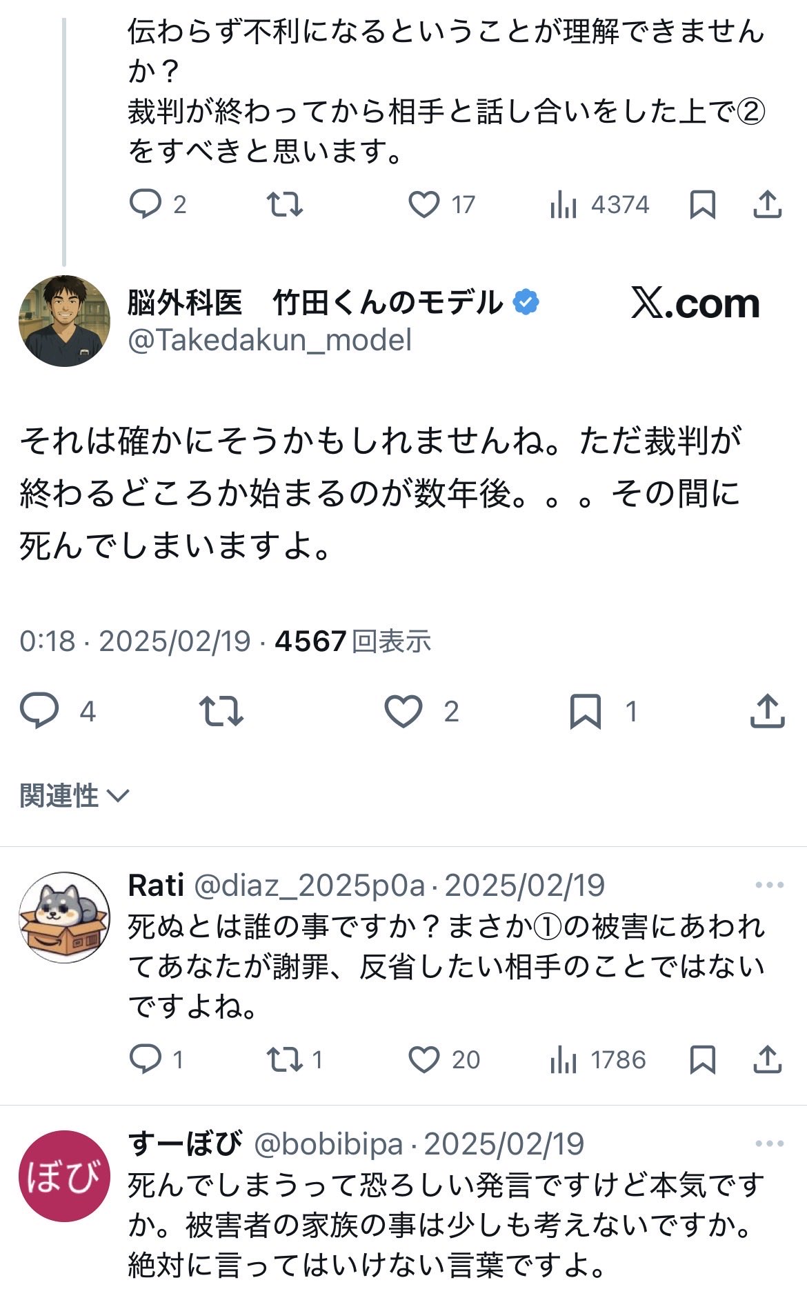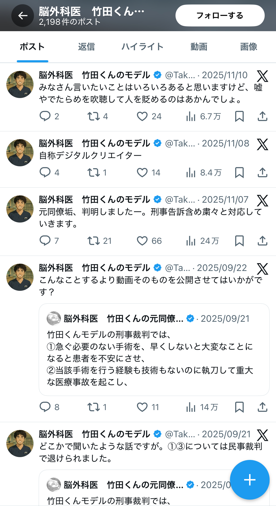 | … | 4326/02/13(金)22:06:32No.1401701163そうだねx15一連の騒動に竹田くんみたいな下手くそ医者はいくらでもいる知らないのは患者だけってメで反応してる人に |