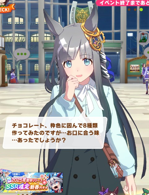 | … | 27426/02/14(土)00:32:48No.1401754572+シチーガールの渡し方と聞いてチョコ口移ししてくれるユキノさんくなんしぇ |