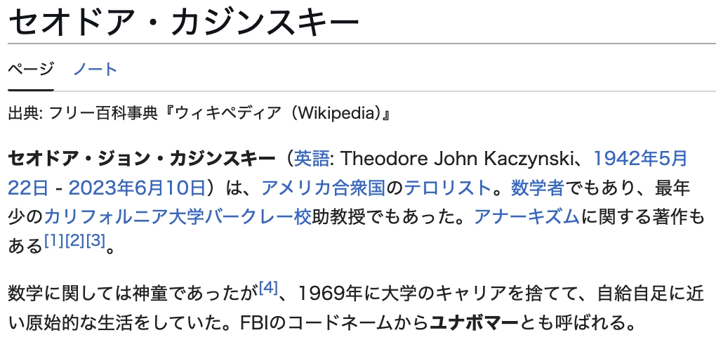 | … | 4026/02/14(土)01:15:12No.1401766083+下の名前と思想と能力の事考えると恐らくユナボマーなんだけど名字なんだコレ… |