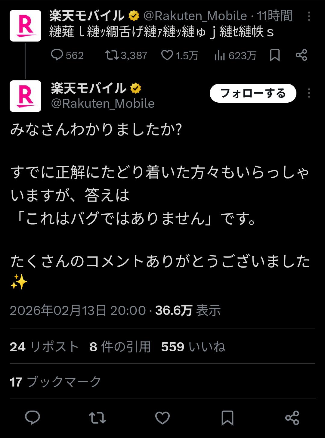 | … | 926/02/14(土)03:21:39No.1401782184そうだねx34本物の自社アカウントでやっちゃったの!? |