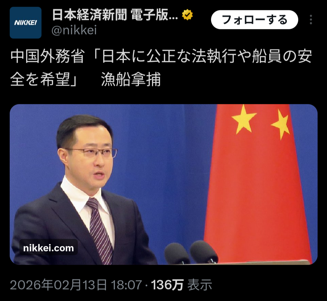 | … | 3026/02/14(土)03:50:08No.1401784144そうだねx3ネットの掲示板のルールすら守れないやつが中国の無法叩いても説得力ないでしょ |