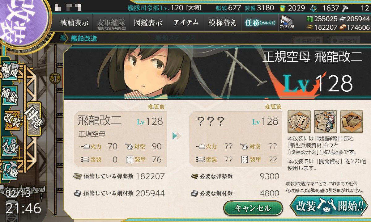 | … | 3426/02/14(土)11:38:18No.1401842464+改二じゃなくて改三なので要求レベルも高くなりマスネー… |
