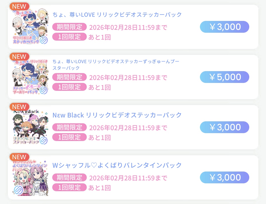 | … | 11626/02/14(土)12:32:40No.1401857280+いつもステッカー高ぇな…って思ってるけどずっぎゅーんブースターパックは納得のお値段なんですよ…! |