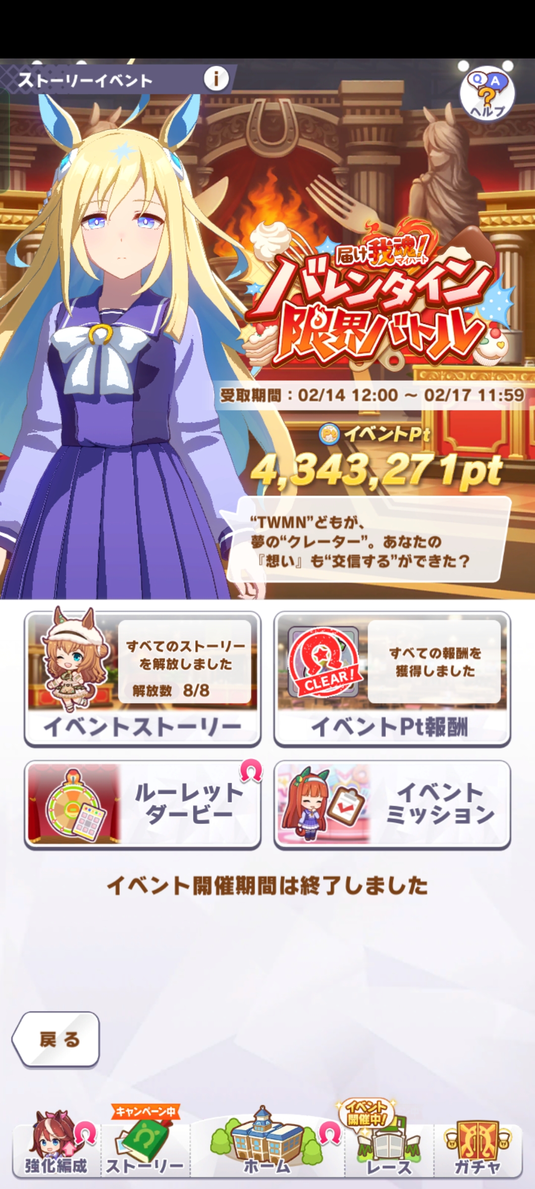 | … | 5126/02/14(土)16:05:13 ID:R4ap4SXUNo.1401914598+>そういえばおフランスから渡ってきたウマ娘ちゃんっていないんですね 私が倒しちゃいましたからね |
