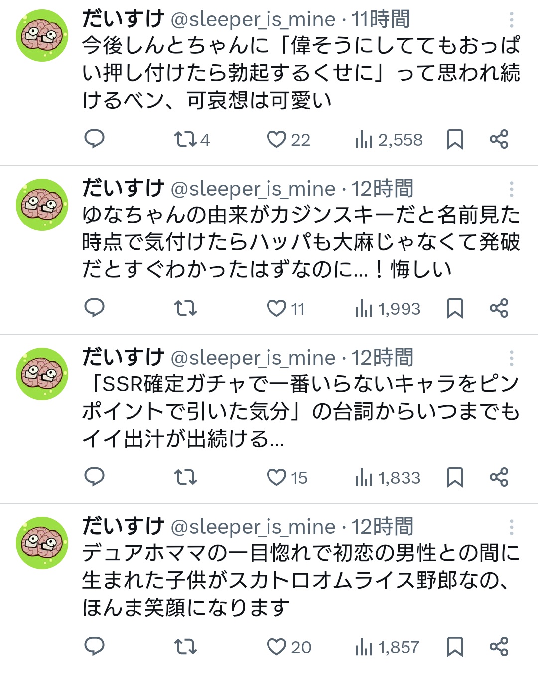 | … | 5326/02/14(土)17:31:21No.1401939381+しんとちゃんもOKしてるし一度ためしに脳を塩酸で焼いてみよ? |