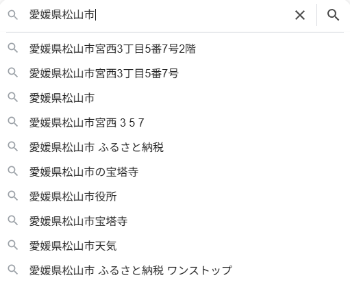 | … | 8526/02/14(土)22:51:25No.1402073580+>愛媛県松山市って入れるとなんか特定の住所出るようになってて笑った |